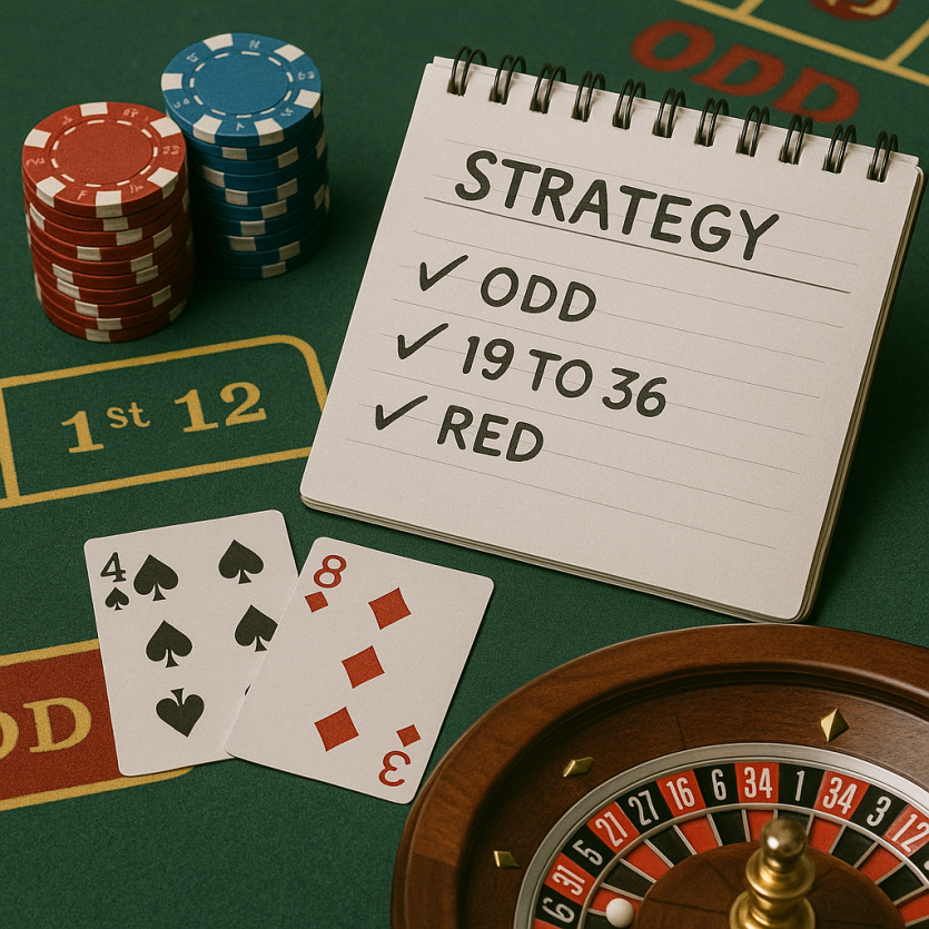 단일 숫자 스트레이트 업(35배 배당)보다는 확률이 높은 외곽 베팅을 활용하세요. (빨강/검정, 홀짝, 하이/로우)